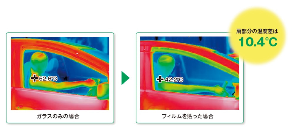 暑さのもととなる赤外線(IR)を大幅にカットするので、車内温度の上昇や、肌がジリジリと熱くなるのを和らげます。