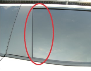 トヨタ系などのサイドガラスのカーテンが付く場所には目隠し的に半透明のセラミックドットが採用されています。